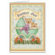 Een mooie bleke groene bloemachtergrond met een groene babykraan in gras met bloemen, en twee schattige beren erin. Boven een rol met het lappendeken woord "Dubbele vreugde". De perfecte, aanpasbare kaart om de geboorte van tweelingen aan te kondigen of om een paar te feliciteren met de geboorte van hun nieuwe baby's. Er zijn ook postzegels.