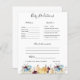 Deze baby shower spelkaart is voorzien van mooie pompoenen & floralen met zachte waterverf in tinten stoffige blauw en wit, die zijn uitgebalanceerd met zoet oranje en onbeschoft paars, waardoor het een warm en luchtachtig palet wordt. Verander achtergrondkleur of voeg grafiek toe om uw douchethema aan te passen. Neem contact met mij op voor een aangepaste bestelling. Natuurlijk is het niet nodig dat je spelletjes speelt op het baby shower, maar denk er eens over na: je gaat een groep van alle leeftijden hebben, en de meeste gasten hebben elkaar waarschijnlijk nooit ontmoet voor het feest. Het mengen in een paar van deze klassieke baby showers spellen is een perfecte manier om het ijs te breken. Deze professioneel ontworpen kaarten zijn snel aanpasbaar. Voeg uw douanetekst aan dit ontwerp toe door de "Edit this design sjabloon"vakjes op de rechterkant van het punt te gebruiken, of blauwe "pas het"knoop aan om de tekst te schikken, de doopvonten en de kleuren te veranderen en extra informatie of afbeeldingen aan dit ontwerp ook toe te voegen. Klik op "Verder aanpassen" om de volledige bewerkingsopties te openen. Als je coördinerende objecten nodig hebt (dank je kaarten, enz.), kun je contact met me opnemen voor een aangepaste bestelling. ****Voor aangepaste aanvragen heb je mijn hulp nodig. Plaats deze koopwaar niet in je kar. Stuur me in plaats daarvan een e-mail naar lauralise@iyhtvdesigns.com Een link naar je koopwaar wordt naar je gestuurd zodra het object beschikbaar is. U kunt die link gebruiken om uw bestelling te plaatsen. Gelieve maximaal 48 uur toe te staan.