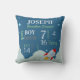 Baby Birth Stats Blue Sky met Red Space Rocket Kussen
