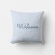 Baby blauw welkom gooi kussen. Het is omkeerbaar voor een marineblauw welkomstkussen. Verkrijgbaar in verschillende maten en materialen.