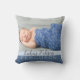 Keer het geheugen voor altijd met deze blauwe keepaardkussen voor een baby jongen. Dit ontwerp kenmerkt een afbeelding van uw baby met eerste, midden en familienaam. Op de achterkant, pas het blauwe gestreepte ontwerp met de geboortedatum van uw baby, de geboortetijd, en het gewicht van uw baby aan.