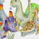 Baby Boy Dinosaurussen Groen en Paarse Behang
