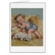 Retro / Baby wenskaart. Schattige kleine baby die in een hooiberg ligt met een kleine witte hond! Lieve baby en puppy!