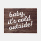 Eenvoudige en moderne doormat of vloermat voor het winterseizoen dat zegt: "baby, het is koud buiten" in een gestampte stijl script op een plankhoutachtergrond.