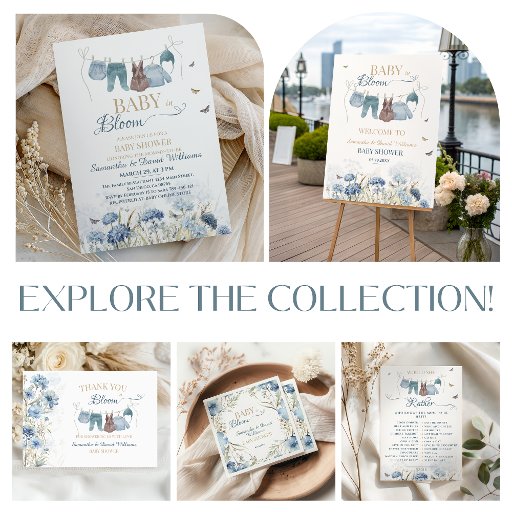 These “Baby in Bloom” napkins were inspired by a calm spring meadow filled with soft blue wildflowers and fluttering butterflies. The airy watercolor florals create a light, elegant look that adds a beautiful botanical touch to your baby shower table and celebration.