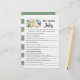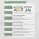 Koop deze bewerkbare kaart en geniet van hoge kwaliteit Baby shower Jokes Game voor uw evenement! Baby shower, Gender onthullen Activiteiten! Sage Green Brouwerij Unisex ontwerp. ANTWOORDEN: 1.Een infanterie 2.Een kleine frituur 3.Ze gaat haar baby in het voorjaar 4.Ze stuurde haar een pee-mail 5.In een bass-inet 6.Alles wat je wilt 7.I zei nee, 40 baby's zijn genoeg 8.Niet als je de luier van de baby snel veranderen 9.De baby kan niet de moeder 10.Where's Pop Corn? 11.She vertelde hem om een baby monitor 12.Why niet op te halen? 13.A kidder 14.It heeft een rammelaar 15.If hij huilt het is een jongen. Als ze huilt, is het een meisje
