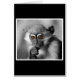 Zwarte en witte foto van een baby kerry-volle Mangabey aap met prachtige bruine ogen, die het leven in overweging neemt.