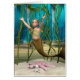 Kleine schattige baby zeemeermin op een blauwe fantasie oceaan achtergrond