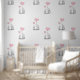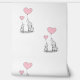 Baby Olifanten & Roze Hart Ballons Design Wallpaper. Perfect voor een kinderdagverblijf, kinderkamer of speelkamer. Verkrijgbaar in verschillende "hartballonnen" kleuren.