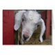 Een witte baby kijkt de buitenwereld uit van achter de veiligheid van zijn rode schuur. Copyright Steven Holt/oinkpix.com.