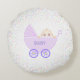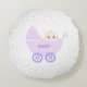Cute violet baby stroller met baby en multicolored sterren op witte achtergrond Pillow. De tekst van de baby kan worden gepersonaliseerd.