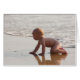 Een schattig afbeelding van een baby die op het strand kruipt, geniet van de golven van het spatten.