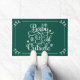 Dit feestelijke formaat voor de feestdagen kenmerkt "het is Koud buiten"in witte manuscriptdoopvont met sneeuwvlokken en steraccenten, en een ontwerp van de rolgrens. Rich emerald groen en witte kleuren.