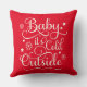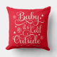 Het seizoensgebonden kussen ontwerp kenmerkt "Baby het Koude Buiten"manuscript dat tekstontwerp met ster en sneeuwvlokaccenten schrijft. Heldere rode achtergrondkleur kan worden aangepast om te coördineren met uw vakantiedecor.