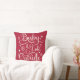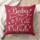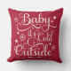 Seizoensgebonden kussen zijn voorzien van "Baby het is Koud Buiten" script dat tekstontwerp schrijft met ster- en sneeuwvlokaccenten en een patroon van diagonaal rode en zachte witte snoepstrepen op de achterzijde. De donkere ruby rode achtergrondkleur kan worden aangepast om te coördineren met uw vakantiedecor.