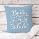 Seizoensgebonden kussen zijn voorzien van een stijlvol script "Baby het is Koud Buiten"-typografie met ster- en sneeuwvlokaccenten. Robuuste lichtblauwe / poederblauwe achtergrondkleur kan worden aangepast om te coördineren met uw vakantiedagen.