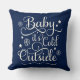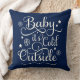 Het sensationele seizoensgebonden kussen design is uitgerust met "Baby het is Koud Buiten" script dat tekstontwerp schrijft met ster- en sneeuwvlokaccenten. De blauwe achtergrondkleur van de zeemacht kan worden aangepast om met uw vakantiedagen te coördineren.