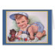 Retro / Baby wenskaart. Schattig jongetje in een pet met zijn kleine puppy! Een briefkaart voor elke gelegenheid!