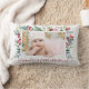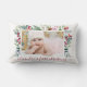 Een speciaal aandenken vakantie gooi kussen om uw baby's eerste Kerstmis te delen. Het eenvoudige ontwerp is voorzien van een foto van uw baby omlijst met een waterverf rand van holly berry en diverse greens. Personaliseer met je babynaam in een rode scripttypografie.