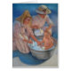 Twee Victoriaans dames geven een baby een zomerbad in een wasbuis. De afbeelding van het oorspronkelijke pastelschilderij van Sue Halstenberg.