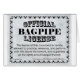 Officiële Bagpipe-licentie. Er zijn veel activiteiten waarbij diverse apparatuur betrokken is, zoals het bedienen van een auto, een vliegtuig, enz., die gespecialiseerde training en licenties vereisen. Het maken van muziek is iets dat gewoonlijk opleiding vereist: lessen, praktijk, en repetities. Moet van de potentiële muzikanten niet worden geëist dat zij een vergunning krijgen om de apparatuur te bedienen, d.w.z. hun muziekinstrument?