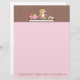 Zakelijk briefhoofd voor bakkerij of bakkerij. Het ontwerp is uitgerust met een meisje dat cupcakes bakt op chocolade en een roze gestippelde achtergrond. Eenvoudig aan te passen en wordt geleverd met uw keuze uit papier en eindigt.
