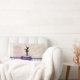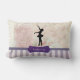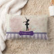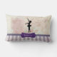 Een lumbaal kussen met een silhouet van een ballerina op een achtergrond. Deze elegante balletdanseres staat op haar tenen, en wijst met haar armen sierlijk uitgestrekt. De achtergrond bestaat uit een sjofel uitziend patroon met bloesems. Een decoratieve paarse naamplaat zegt Ballerina en kan worden aangepast om te zeggen wat je wilt, zoals een naam of monogram. Het onderste deel van het ontwerp heeft lavendelstrepen in stijl, afwisselend in donkere en lichte kleuren.
