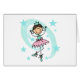 Een gekruiste haren stokfiguur ballerina in een roze en aqua leotard en tutu met een sterren en zwenkelaars aqua achtergrond op aanpasbare T-shirts, lichaamspakken, mokken, magneten, canvas tassen, sleutelhangers, kaarten en nog veel meer.