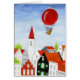 Liefde muis zweeft in haar luchtballon boven de daken van een stad. Fragment van het schilderij van de ballonmuis en de dakpannen met s t u d i oL e n n A r t. www.studiolennart.com