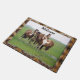 Een groep vijf bruine en witte paarden Appaloosa die samen op een groen gebied staan.Met een baby colt.Deze vloermat heeft een abstract lijst.De tekst en tekstkleur kunnen in om het even welke kleur worden veranderd u het met het douane label wilt zijn.