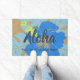 Blauwe kleurweg. De boodschap van Aloha verwelkomt uw bezoekers van uw eigen tropische paradijs. Deze overmaat hibiscus-bloem werd geïnspireerd door traditionele pareaus die voor de romp werd gedragen. Het rijdt boven op een nepgrasdoek en komt op verschillende kleurmanieren voor. U kunt het bericht aanpassen.
