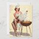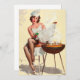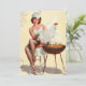 Retro pin-up art van Great retro pin-up girl die plezier maakt met een barbecue.