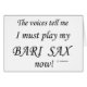 De stemmen zeggen me dat ik nu mijn Bari Sax moet spelen. Heb je stemmen in je hoofd die je vertellen dat je je instrument moet oefenen of dat je moet optreden? De stemmen kunnen afkomstig zijn van je leraar of directeur, of van jezelf, die je vertellen dat je moet oefenen om al je talent te laten zien.