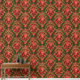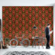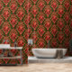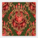 Dit is een digitaal verbeterde print afgeleid van een ca. 1900 barokke rococo stijl van grootschalige scrolling foliate en florale medaillons druipend met foliate swags en rozen. Gedrukt in groen, rood, roze en wit op rode ondergrond.