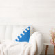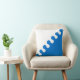 "Per bocht sinister nebuly argent en azuur." Populatiebadge voor de Baronie van de Cleftlands in de Society for Creative Anachronism. Achterkant van kussen is een middeleeuws patroon in coördinerende kleuren.