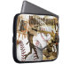 De honken zijn geladen - het is de onderkant van de 9e - toonhoogte is 3 ballen, 2 slagen. ... er gaat iets gebeuren hier - catcher geeft het teken, je ziet de werper zijn hoofd twee keer schudden dan knikken goedkeuring - pitcher controleert de loper, catcher komt in positie achter het bord - pitcher windt zich op, gooit - het is een fastball, je favoriet, een beetje laag en buiten. . . Lichtgewicht en waterbestendige aangepaste neopreen laptop mouw met grunge honkbal en traditionele stijl scorebord graphics samengesteld door katz_d_zynes