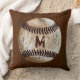 Koel oude honkbalslaapkamer met ideeën voor jongen en mannen. Faux Baseball Pillow op een faux Cherry Wood achtergrond. Draai de kussen om voor het houten uiterlijk.