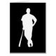 Een eenvoudig afbeelding van het silhouet in zwart-wit van een honkbalspeler bij de bat. Hij staat op een honkbalknuppel.