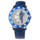 Dit is een aantrekkelijk sporthorloge voor die vent die een echte honkbalfan is. Hij is voorzien van een blauwe honkbalspeler en een vleermuissilhouet tegen een wit afbeelding, compleet met rood naaien. Het afbeelding wordt geplaatst op een lichtgrijze achtergrond. De rode diamantvink markeert het show van de uren. *Dit ontwerp maakt gebruik van afbeelding © Graphics Factory.com*