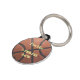 Een basketbalbal, versleten maar nog steeds helder van kleur.