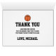 Basketball Hartelijk dank. Laten we een bal spelen! Deze dankjewel kaart. is gemaakt met een Basketball court achtergrond textuur, baseball stitch accents with "Dankuwel" in the center, de "O" is vervangen door een Basketball Customize this design with your information, and any custom message you want to include!