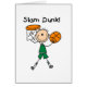 Bakketbasketbalkleding, design T-shirts, mokken, kaarten, basketbalsleutelhangers, knoppen, canvas tassen, hapjes en andere basketbalkleding, en cadeaus met een basketbalspeler op een groene trut en tekst met de tekst "Slam Dunk"!