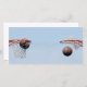 Basketballen, één die de hoepel ingaat, één die de hoepel afsluit voor een score. Ruimte in het midden voor tekst.