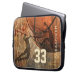 Custom boy's basketbal laptop mouw met silhouetten van twee basketbalspelers vliegen naar de hoepel voor de omgekeerde dunk en slam dunk - basketbal thema graphics composiet van basketbal, hoepel en hof met grunge effect en aanpasbare naam en trui nummer door katz_d_zynes