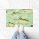 Dit bassenpatroon kenmerkt veel vissen die zwemmen in een zachte, groen-blauwe vochtige achtergrond.