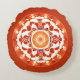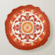 Rond kussen in een batik gestructureerd mandala / medaillon patroon in tinten van terracotta, crème en diep roest rood