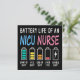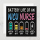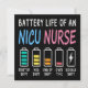 Humorous shift chart showing the battery life of a NICU nurse, also known as a neonatal intensive care unit nurse, with colorful levels from start to double shift. Ideal for neonatal nurses who enjoy relatable workplace humor.