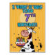 "Ik herder het je zevende verjaardag!" leuke bendse koe met een wenskaart voor verjaardagstaart.