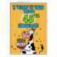 "Ik herder het je 45ste verjaardag!" leuke bendse koe met een wenskaart voor verjaardagstaart.
