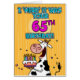 "Ik herder het je 65ste verjaardag!" leuke bendse koe met een wenskaart voor verjaardagstaart.